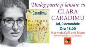 Prieteni din Cluj, joi, 9 octombrie, la ora 18.00, la Insomnia Cafe & Bistro din Cluj-Napoca (str. Universității, nr.2), vă invităm la dialog poetic și lansare cu Clara Caradimu, cu prilejul apariției volumului de poeme Piciorul meu de trandafir, apărut la Editura Cartier, colecția Rotonda, coordonată de Em. Galaicu-Păun.